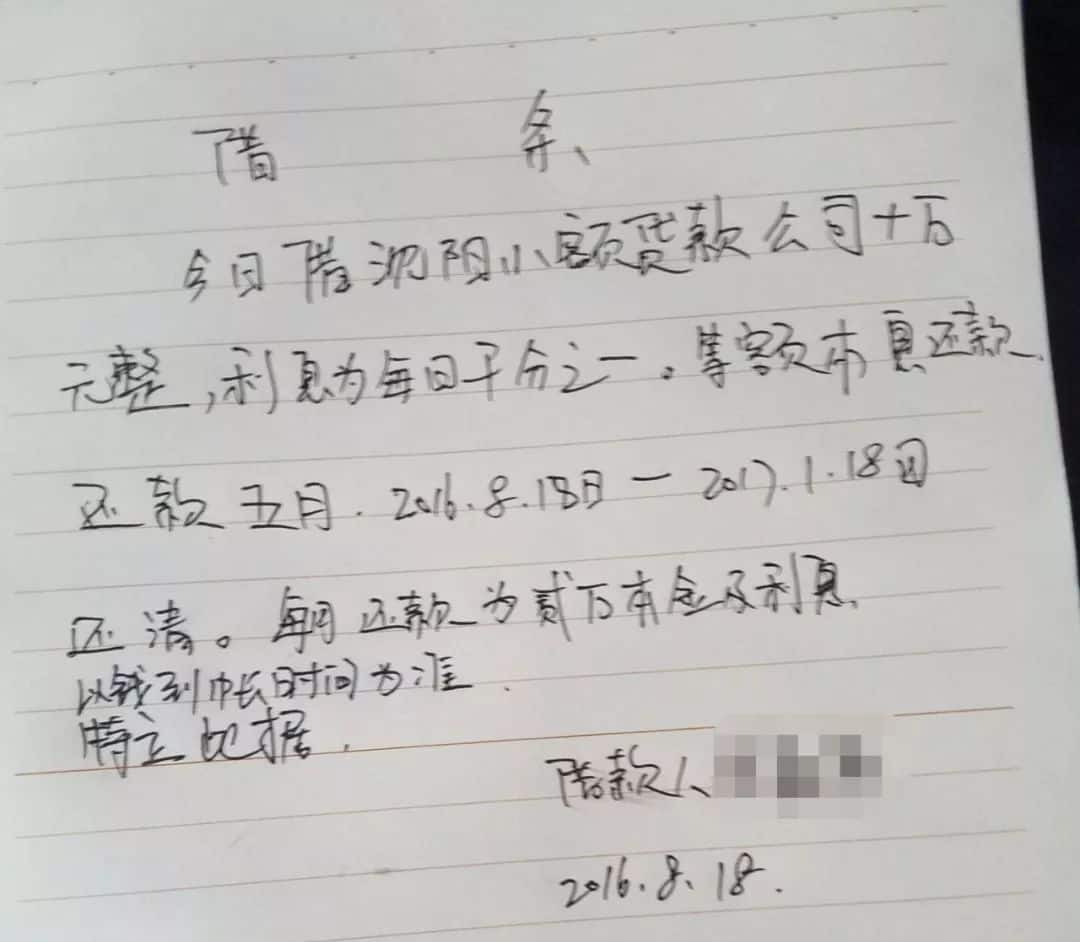 按照借条上的条件,大家很容易理解为放贷公司会以每天千分之一的利率来收取费用。以借款十万来计算,就是每天会多出100块的利息,五个月利息总计15000元。