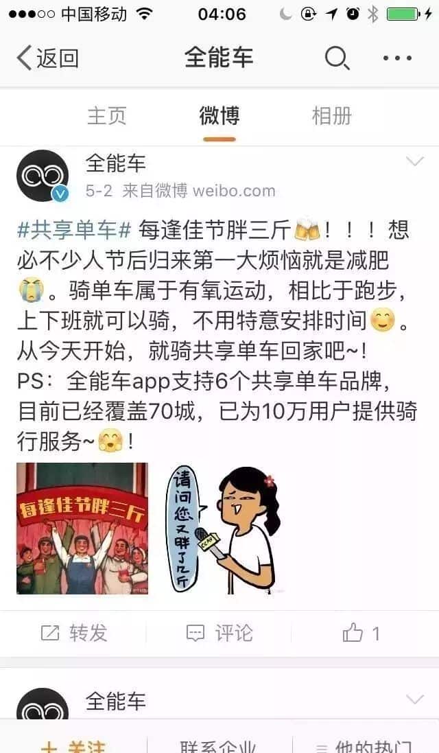 所以实际上,全能车的用户骑行单车时,是没有一分钱给到共享单车的,因此随着“全能车”的走红,各家共享单车难免会对他虎视眈眈。