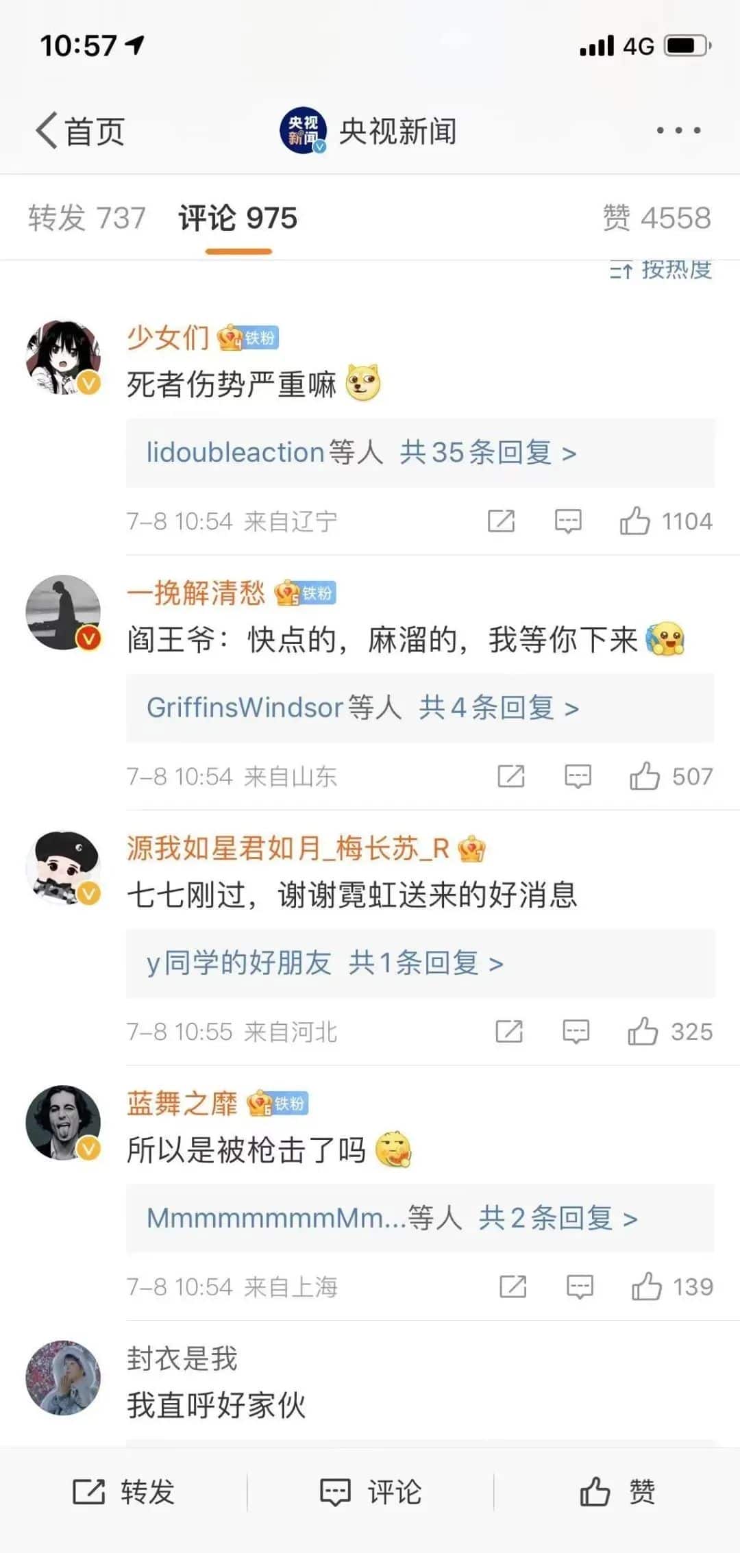 对这种,数次惹怒中国人民的日本领导人被击毙,网友们一时无法控制自己的情绪,贡献了很多精彩的评论