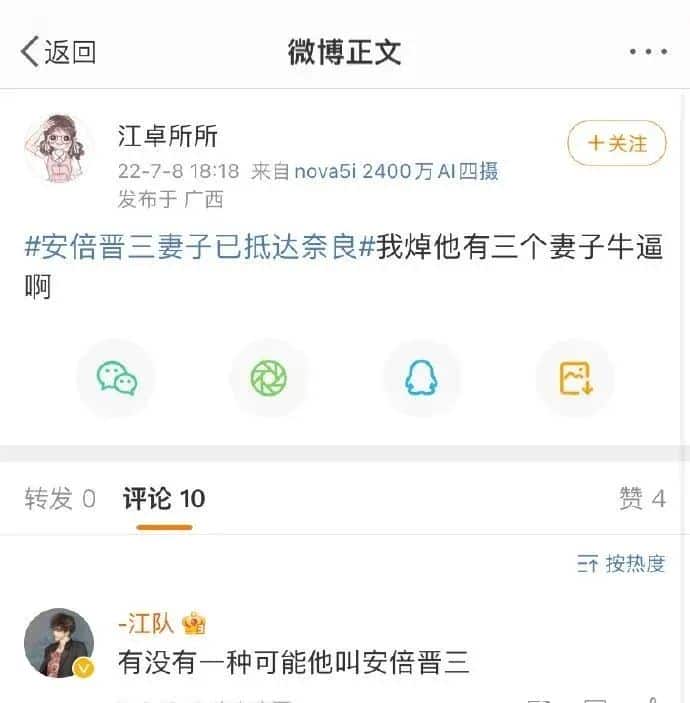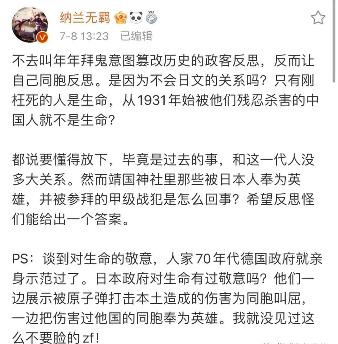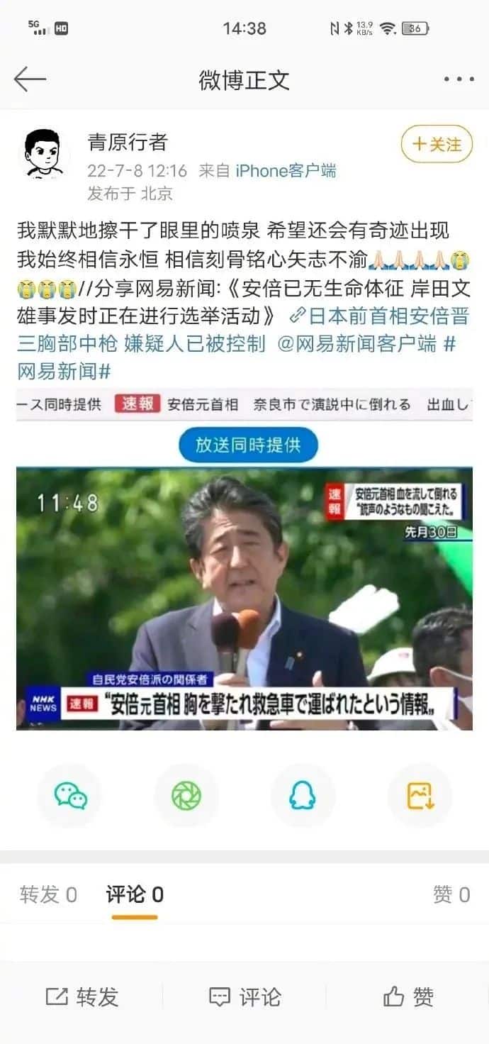 安倍被毙,网友评论亮了!日军未哭,伪军先哭,哭的是真伤心