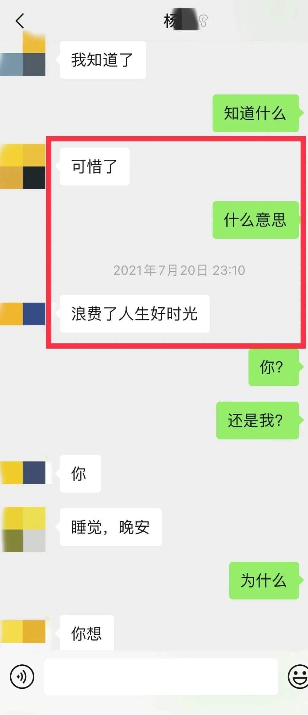 那天晚上我躺了一夜都没睡着,接连第二天三天上班都会轻微渗血。由于缺乏生理知识,我以为得了病,就赶忙去医院检查。结果医生告诉我有一个卵巢囊肿无法剧烈运动可能需要手术(后复查是误诊),我非常害怕就打电话给他,没能想到,杨教授的第一反应是:“怀上了吗?是我的吗?”我说我好像生病了,很害怕,想你来看看我。接着他说他晚上有酒局要谈很重要的事,晚上看能不能早点结束过来。那时我的心开始揪了起来,电话后我等了几天他才来,杨教授说我是因为没有正常的性生活才会内分泌失调,激素水平紊乱,让我别紧张,说:“你就当生了个儿子”。过了几天他有次发消息问我手术了没有,我说医生安排下次生理周期要复查才决定。
