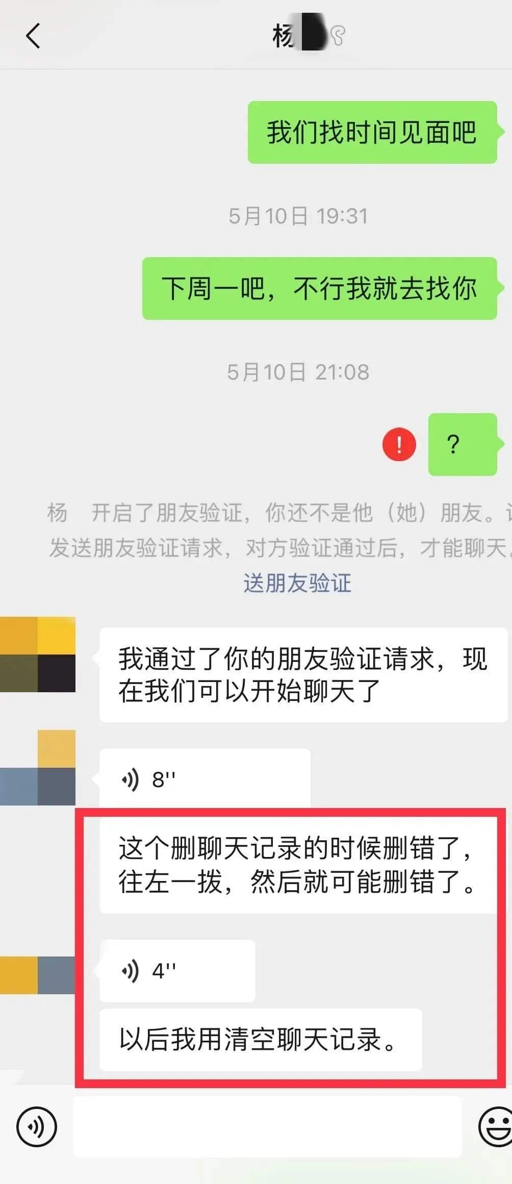 接着他说:“她(传媒业)把我拉黑了,正好我不用自己来。”原来他一贯的伎俩就是在最后露出渣男真面目,然后逼女性自己主动离开。杨教授说他从来不缺女人,他还说:“结了婚才给我生孩子的女人多了去了,我要的是奋不顾身给我生孩子的女人,我要先‘验货’”,并打开他手机给我看了他和某不知名女性关于生孩子话题的聊天记录。