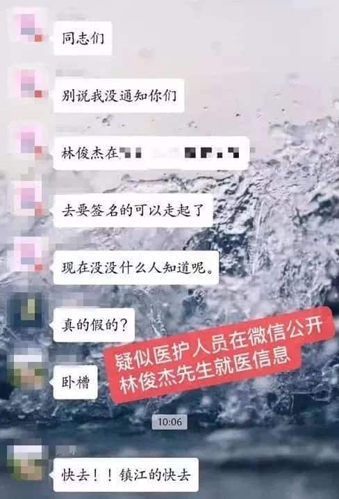 10月26日,歌手林俊杰在江苏镇江开唱,网曝演唱会结束后他因感冒就医,事后疑有医护人员公然在网上售卖其使用过的针头和注水包。