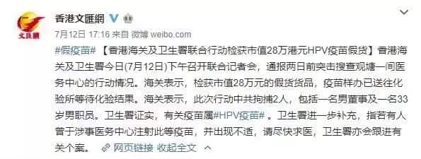 于7月10日查获市值28万港币的HPV假货疫苗,这些疫苗已经有人注射,而且大多数还都是“慕名而来”的内地消费者。