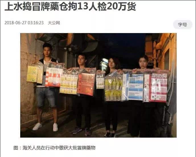 2018年6月,香港警方连同卫生署人员出动,查出20万冒牌药。