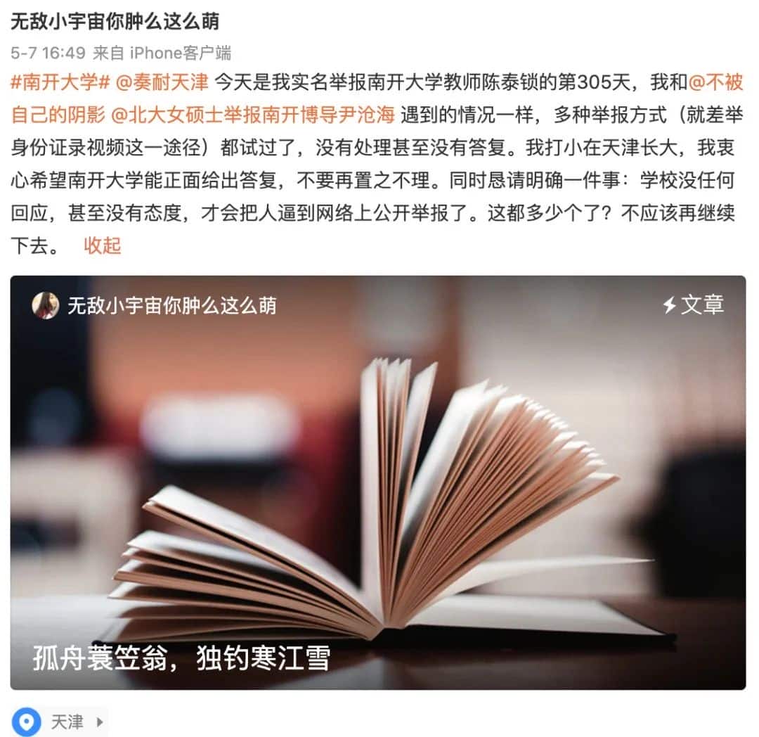 南开大学李文韬之后,南开大学又一位教授被实名举报了。