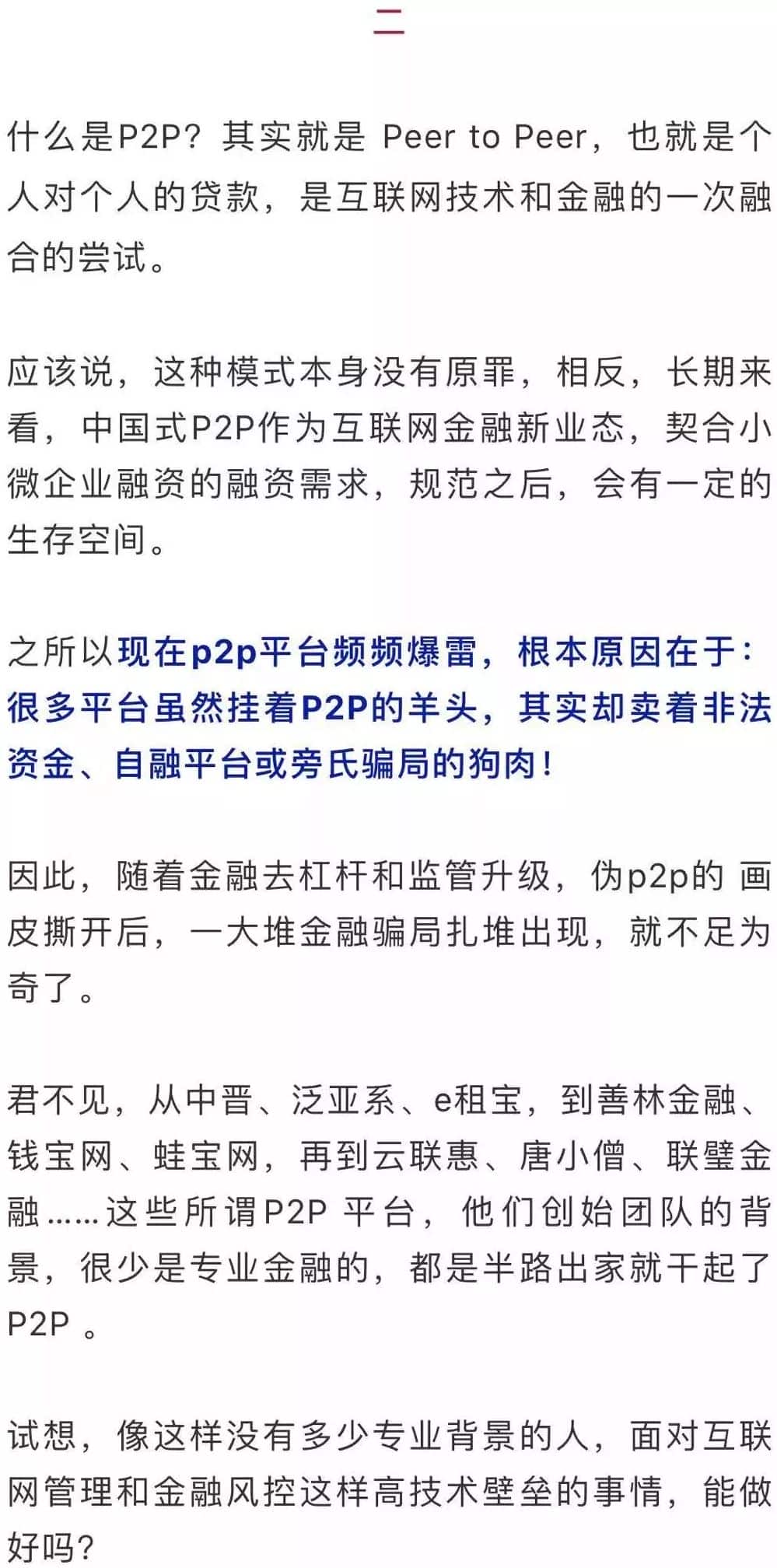 P2P啊P2P,多少骗子假你之名而行!既然是骗局,其崩盘就是早晚的事,早崩盘比晚崩盘好。