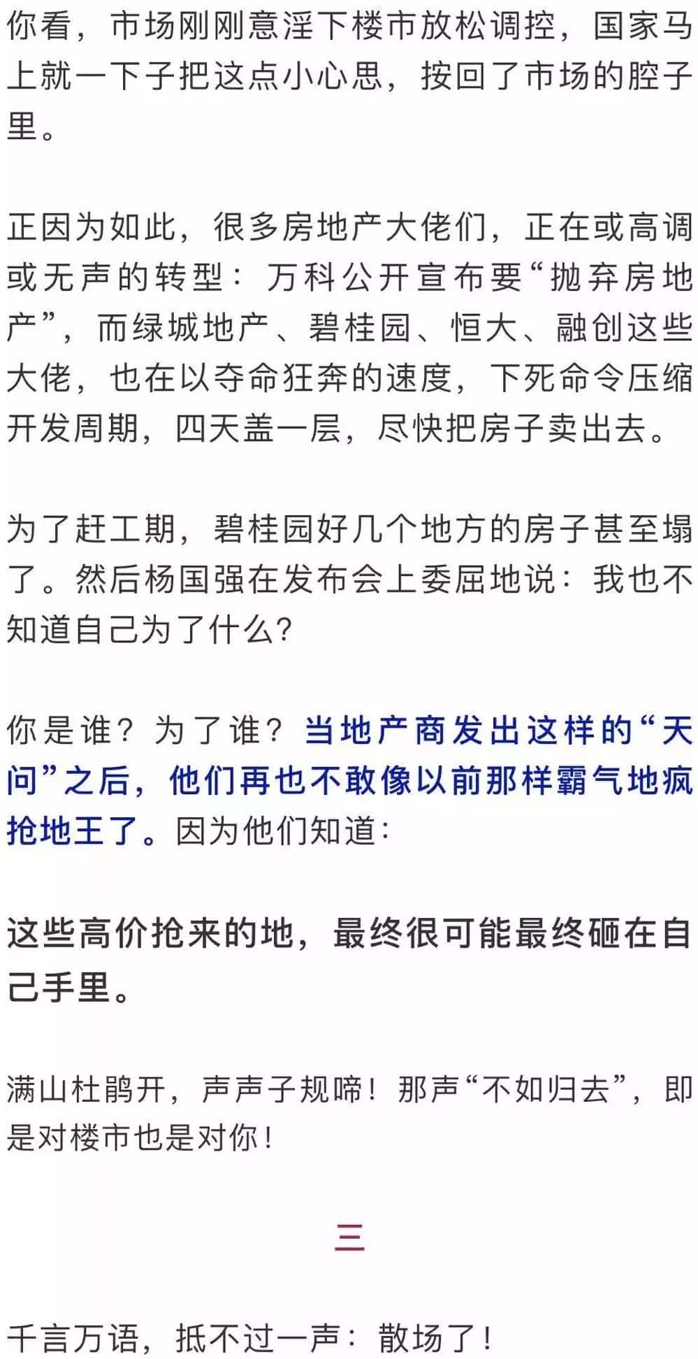 是的,行行重行行,这次,楼市这位“妖艳贱货”是真的要谢幕了!