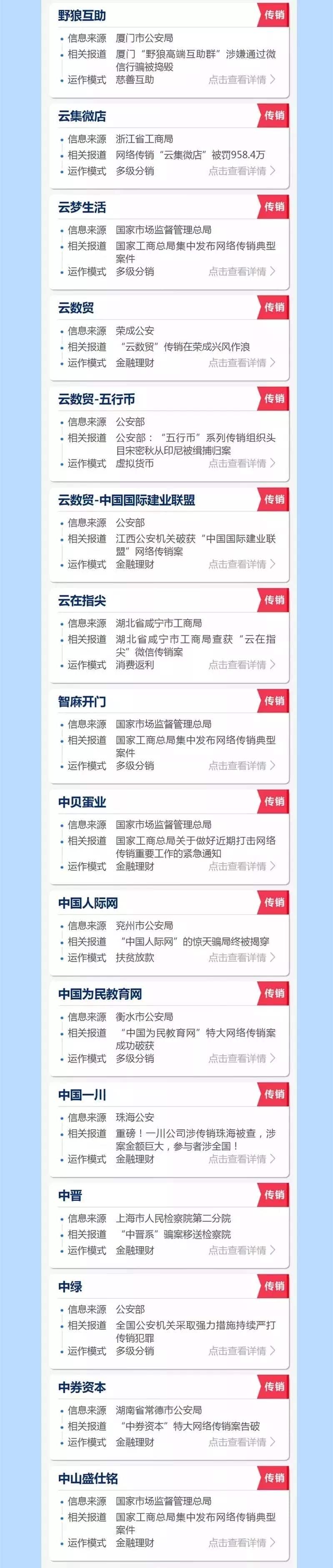 为了避免大家上当受骗,根据公安部、腾讯新闻、微信安全等权威内容,归纳发布以下涉及传销名单。