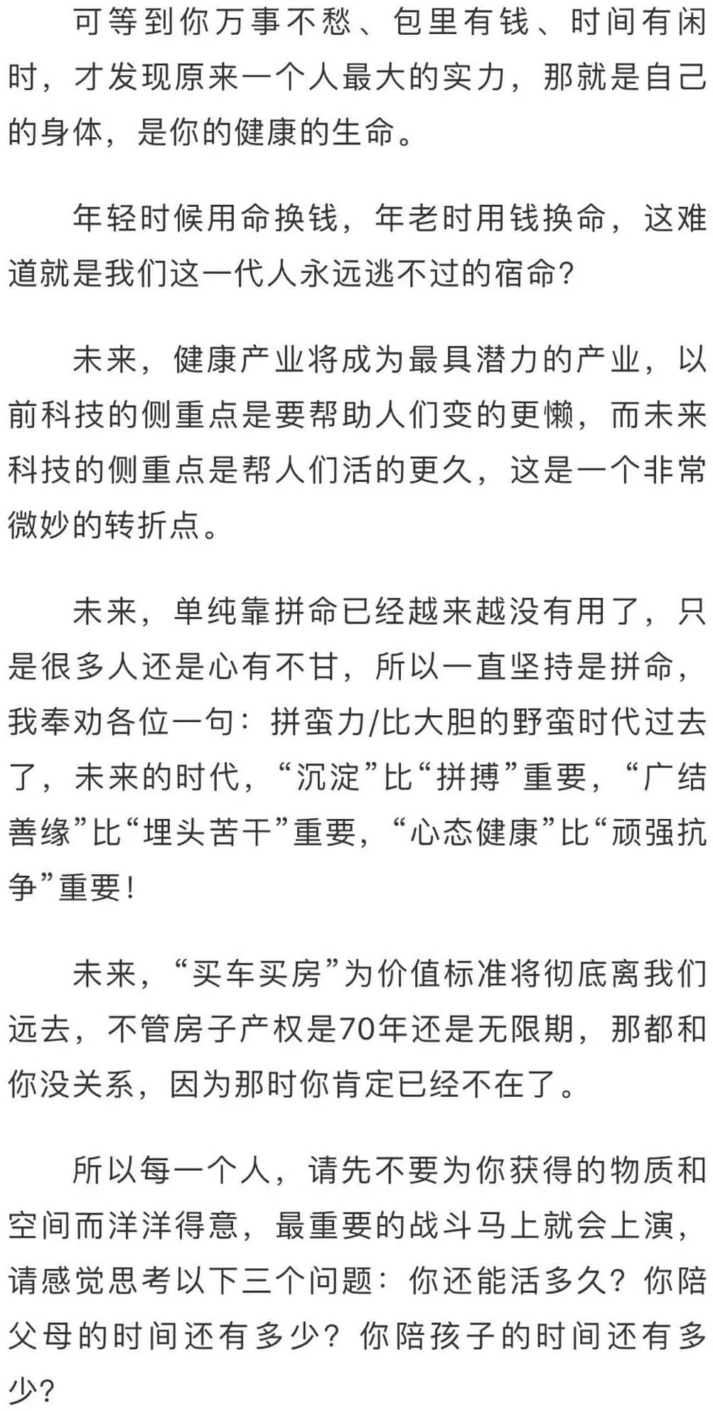 我们挥霍青春,透支身体,以为挣到很钱就会积攒更多的实力和底气过好下半辈子。
