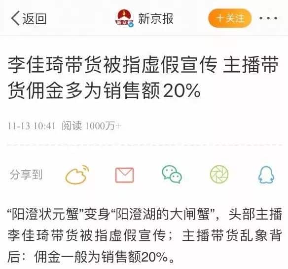 11月3日,新京报发文,称李佳琦被指虚假宣传。