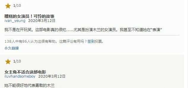好口碑的背后《花木兰》竟收到了漫天的一星差评?