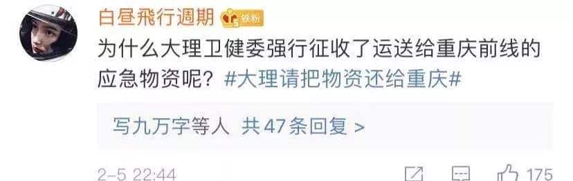 但是,现在这个情况是钱的事吗?是黄石拿不出这些口罩钱,还是重庆比你大理穷?